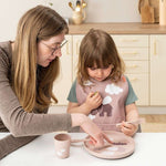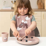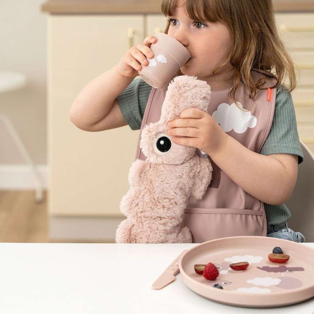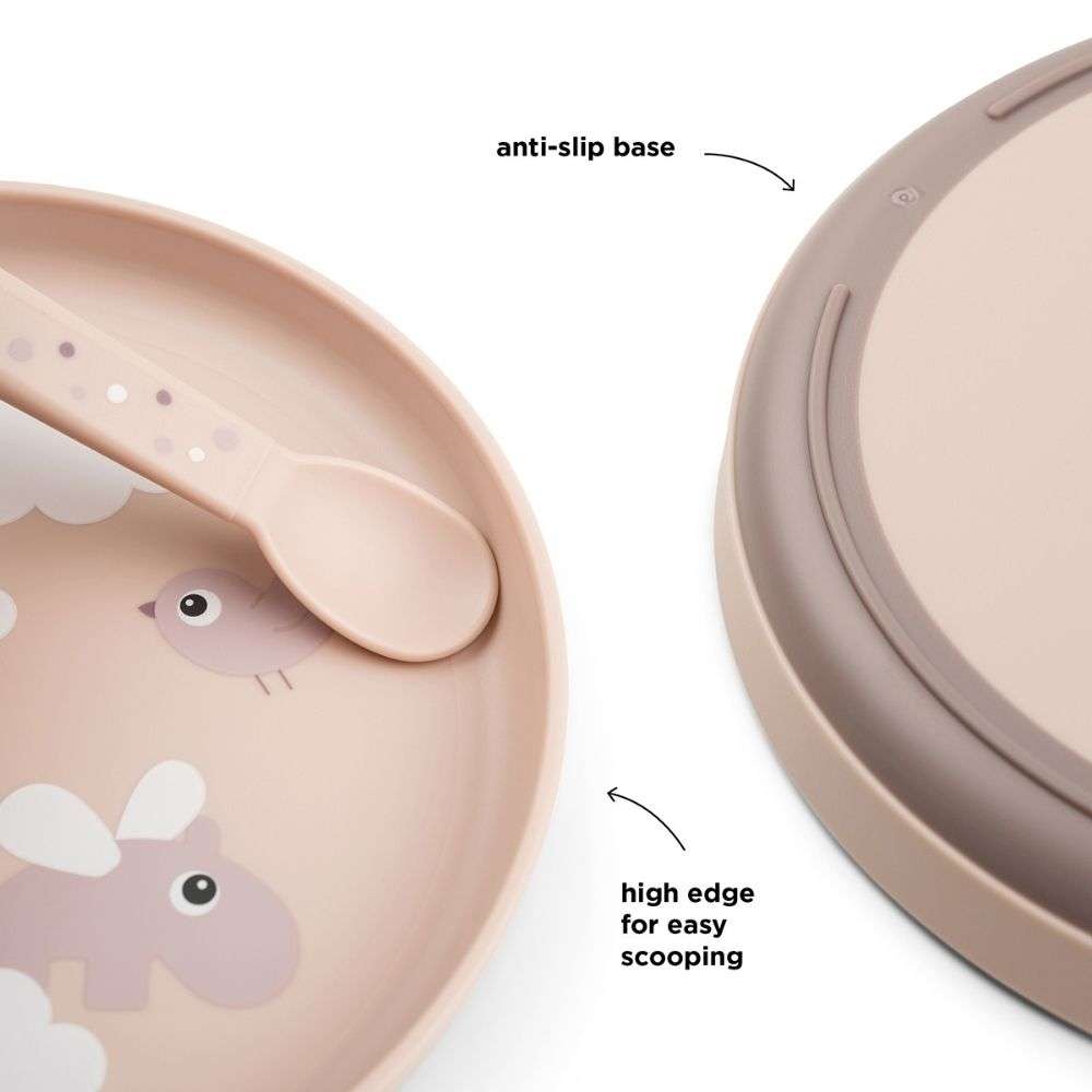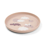 Happy Clouds temalı bu kaymaz tabak, yüksek kenar tasarımıyla çocukların yemeği kolayca toplamasına yardımcı olur.